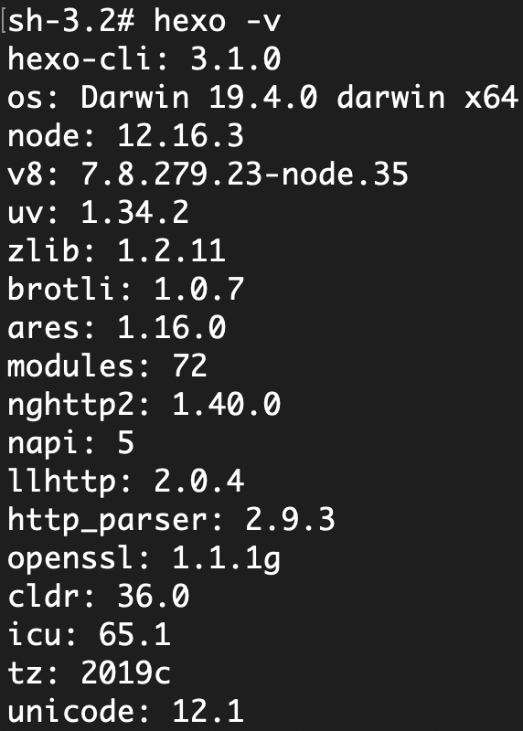 安装成功可查看hexo信息:hexo -v:
