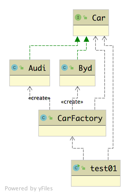 Car car2 = CarFactory.createByd();