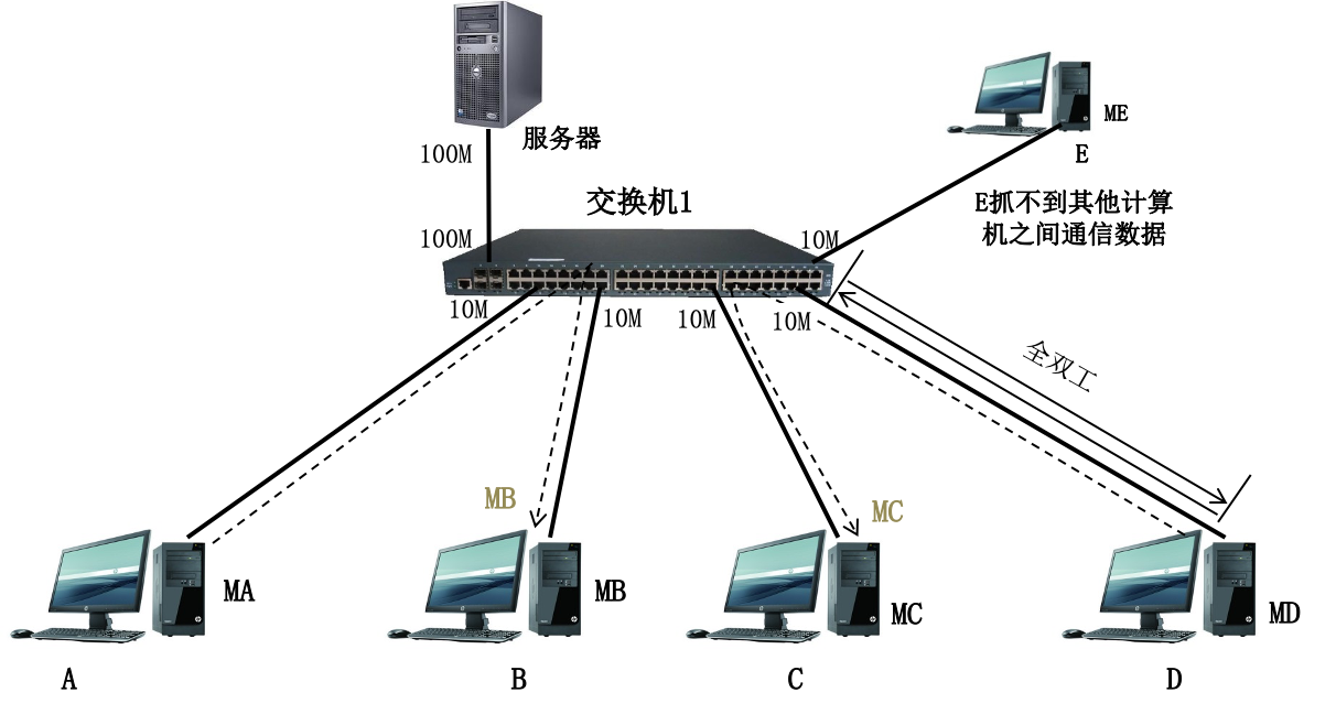 4.全双工模式不再使用CSMA/CD协议;