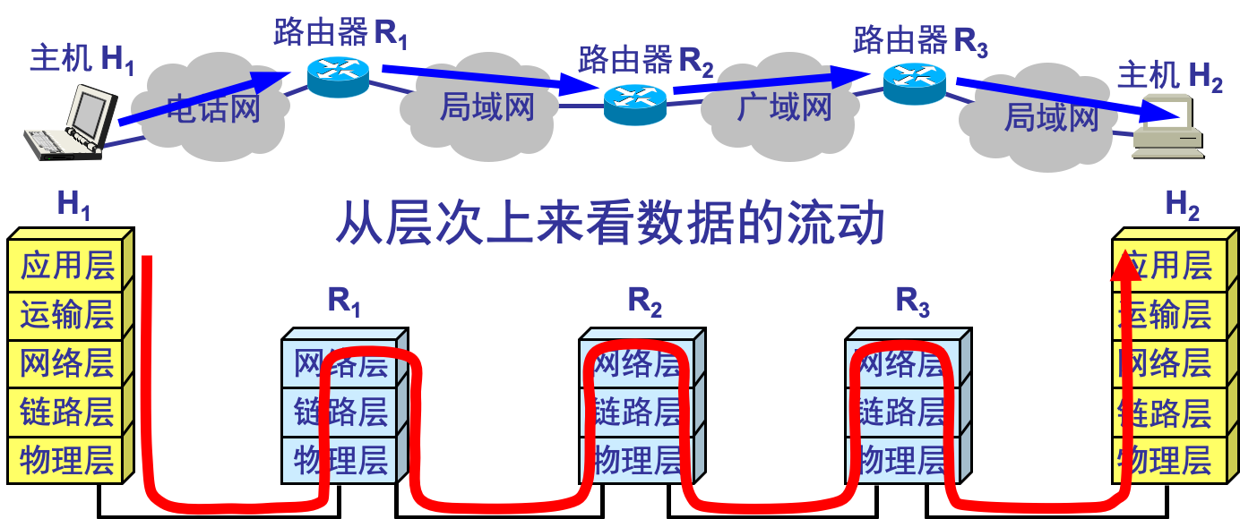 注意:可以看到路由器只到网络层(三层协议),没有应用层,和传输层;