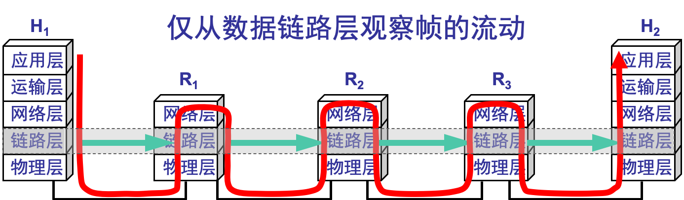 仅从数据链路层观察帧的流动: